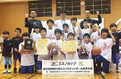磯子区の浜小学校や汐見台小、山王台小の児童らが所属する「汐見台ポシブルミニバスケットボールクラブ」が11月3日、横須賀市で行われた「県ミニバスケットボール秋季大会」の決勝戦で戸塚区の川上北を37対36で破り、初優勝を飾った。県大会制覇は同クラブ史上初の快挙。