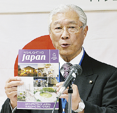洋光台地区連合自治町内会の三上勇夫会長は、昨年11月に内閣府が海外向けに発行している英文広報誌「ハイライティングジャパン」に洋光台が取り上げられたことを紹介。「多くの方が洋光台を訪れ、街がにぎわうことを期待したい」と話した。(5日、洋光台地域ケアプラザ)