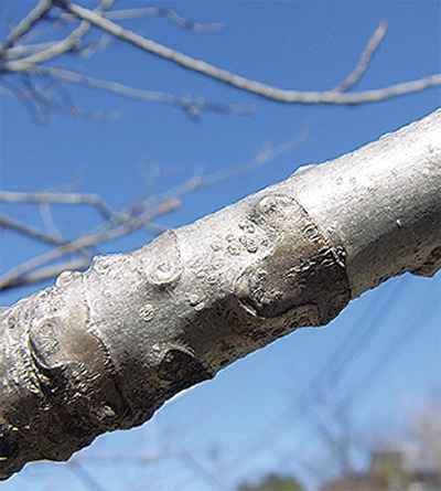 なお、葉痕は古くなると次第に目立たなくなってくるので、新しい枝で探してください。