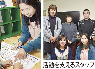 障害のある子どもの学習支援を保育士や介護士が行う同所。幼児教室は0歳〜入学前の子どもを対象に公共の場などで落ち着いた行動ができる心と体の育成を目指す。動画に合わせて体を動かしたり、キャラクターや果物が描かれたカードを使うゲームや、シール貼付などで遊ぶ。車で外出し、海の公園の散歩や、博物館見学を楽しむことも。