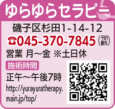 京急杉田駅1分の女性専用リラクゼーションサロン「ゆらゆらセラピー」。テレビ番組などで紹介されている口の中のツボ「天迎香(てんげいこう)」にオリジナルマウスピース(特許)で働きかけ、脳を活性化させた後に骨盤を揺らし、姿勢や顔の歪みなどを調整していく。施術は約10分。初回無料で2回目以降も1千円。継続しやすい料金体系も嬉しい。