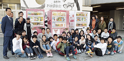 6年1組では、総合学習の時間「杉田の時間」で杉田の魅力向上について考えてきた。8月に杉田劇場を通じて、東京キリンビバレッジと接点をもち企画を進めてきた。児童たちは、デザイン、宣伝・広告、設置グループに分かれ活動。チラシを作成し、企業や個人宅に自販機設置の営業もしたという。3台の自販機は、杉田劇場(2台)と国道16号線の安藤建設そばのマンション入り口に設置された。