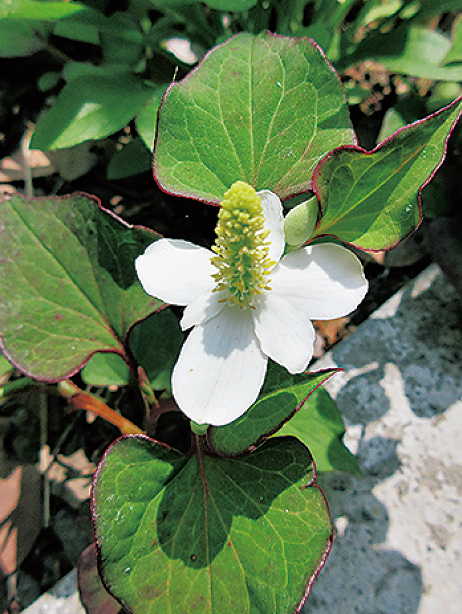 ドクダミの名は、薬効があるので「毒痛み」、「毒ため」がその由来です。強烈な臭気のため、日本ではあまり人気がありませんが、欧米ではハーブとして、また十字状に花が咲くので、教会に観賞用として好まれています。