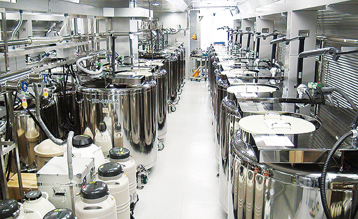 妊娠期から出産期にかけての妊婦とその子どもから採取した血液、尿、母乳などの生体試料には、様々な検査が行われる。また、化学物質等測定用と長期保存用に分け、それぞれ異なる施設で保管。同研究所では液体窒素タンクを置いて長期の保存をしている。