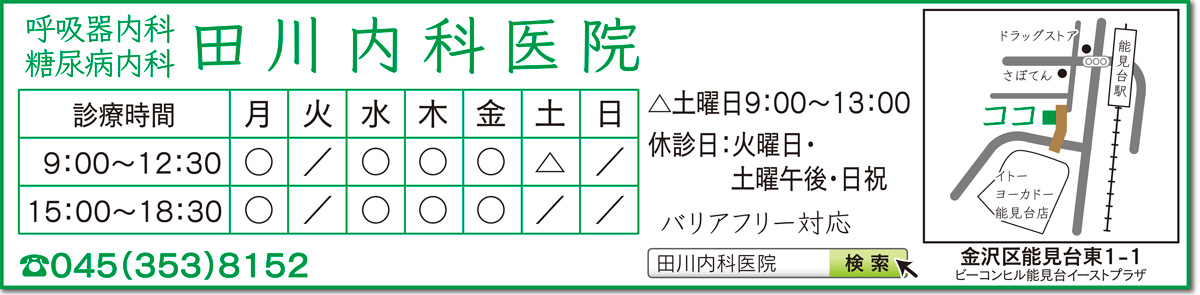 金沢区能見台の田川内科医院は、気管支喘息やCOPDなどの呼吸器疾患および糖尿病をはじめとした生活習慣病を中心に、田川暁大院長の経験と専門性を活かした治療にあたる。