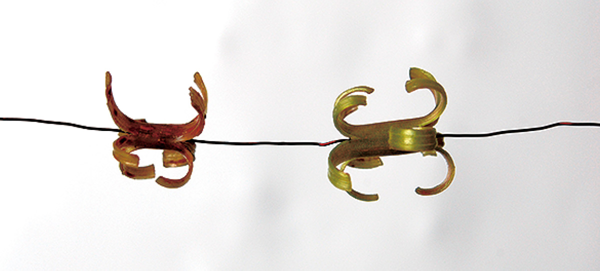 また写真のように糸に通して蛇口から出る水に当てると、水車のようにくるくると回ります。