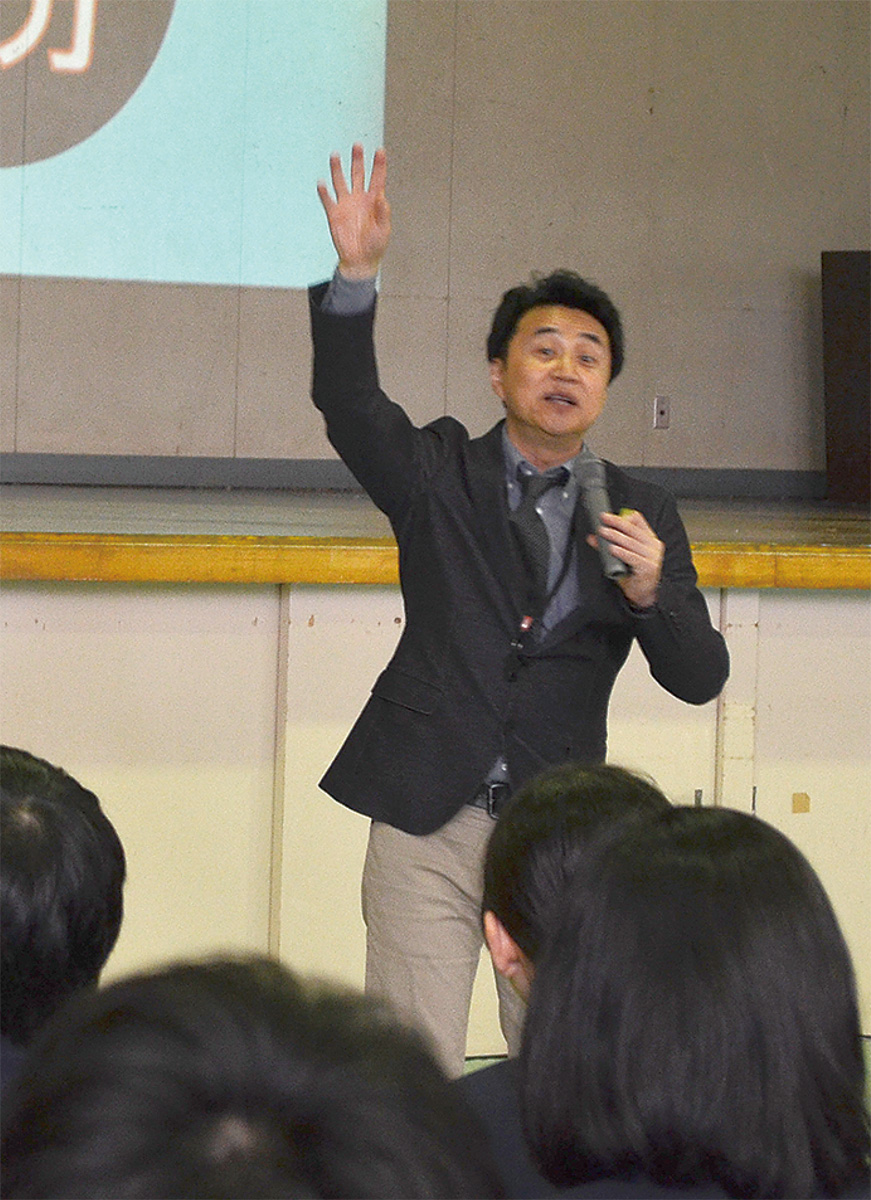磯子区の氷取沢高校(本郷宏一校長)で4月15日、東進衛星予備校英語科講師の安河内哲也さんを招いた特別授業が行われた。