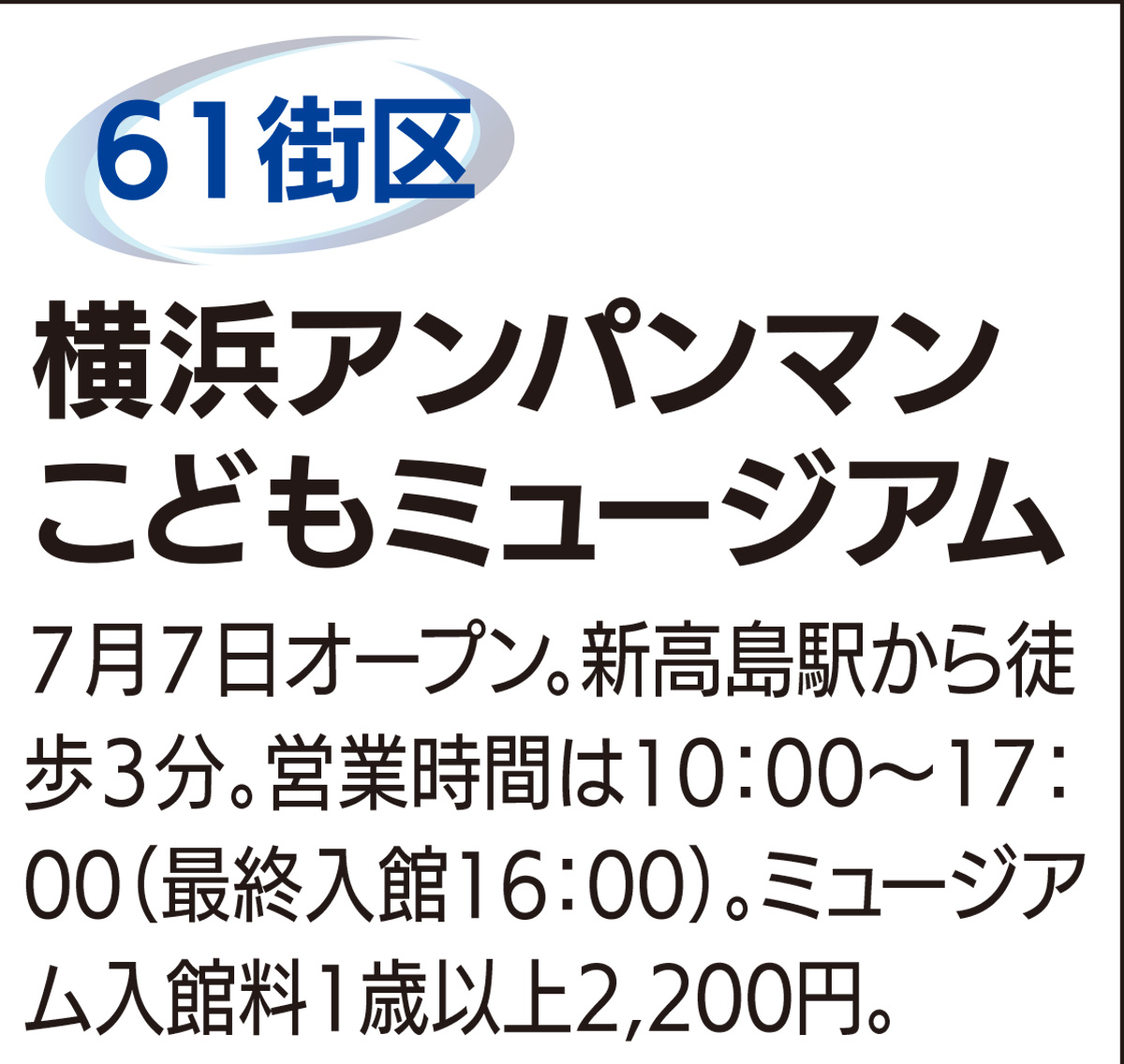 (株)ACM(大澤雅彦社長)が運営する「横浜アンパンマンこどもミュージアム」が7月7日、みなとみらい21地区(MM)の61街区に開業した。同ミュージアムは、今年の5月26日までMM内にあった施設を新高島駅徒歩3分の場所に「いっしょにわらうと、いっぱいたのしい。」というコンセプトのもと、移転・リニューアルした。