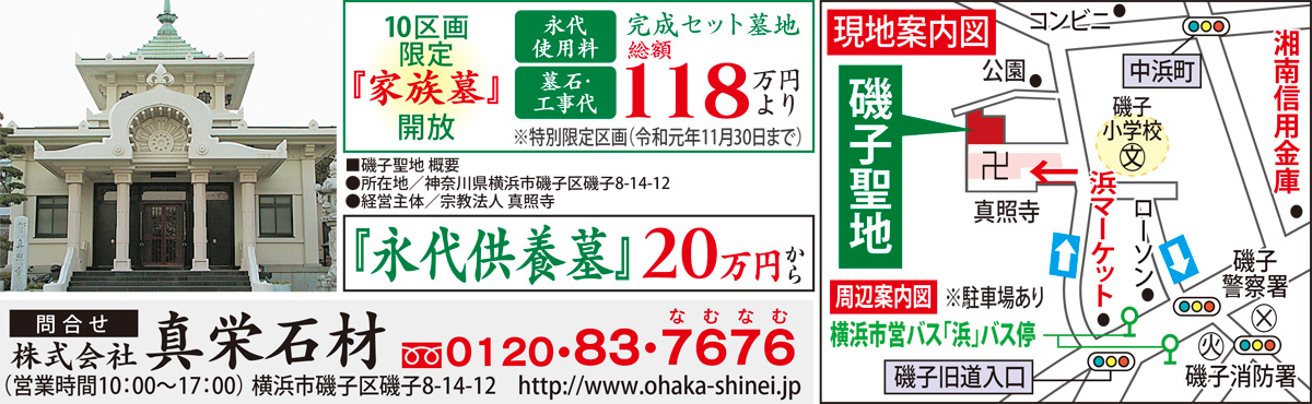 寿永元年(1182)に再興されたと伝わる歴史ある真照寺。同寺の霊園エリア「磯子聖地」は、インターネットサイト「いいお墓」で上位に入る「選ばれる霊園」。宗派・宗教を問わない点が人気だ。