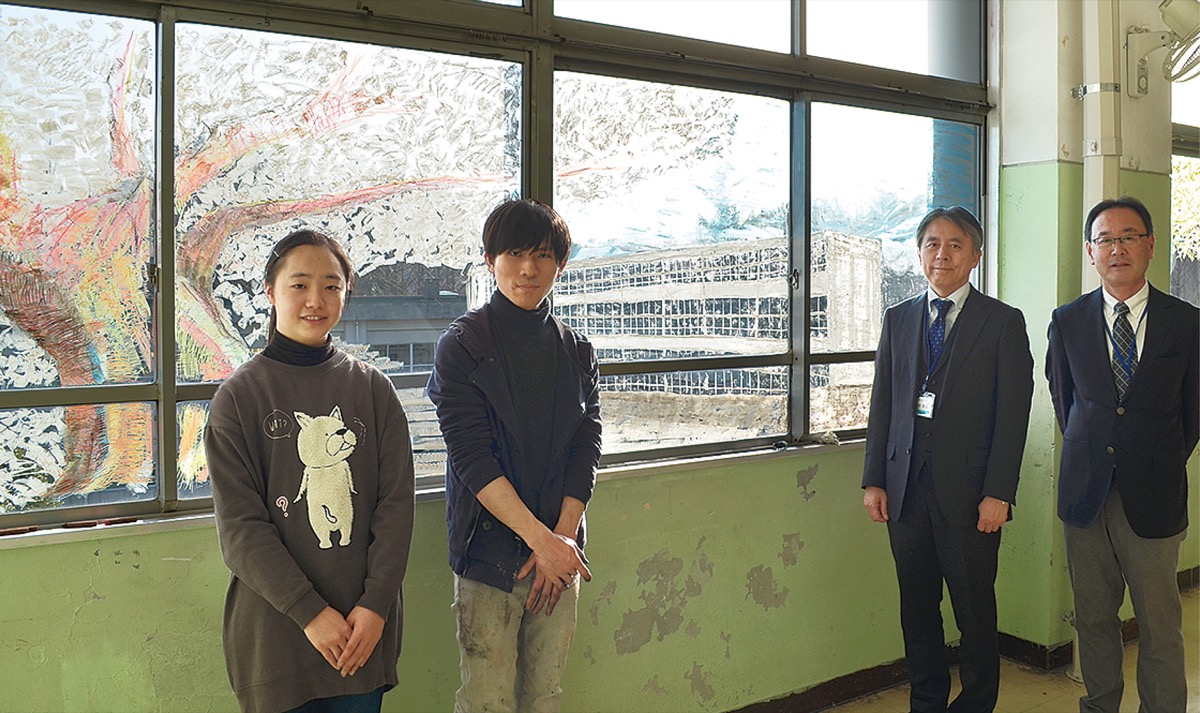 1、2年生がいない状況の中、未使用の教室が増え、久祢田校長は校舎を使い思い出を残すために何かできないかと思案。地元県議にチョークなどを製造する日本理化学工業を紹介され、「ウインドウアート」を知ったという。今回は、同社と繋がりがあった武蔵野美術大学の学生に制作を依頼した。