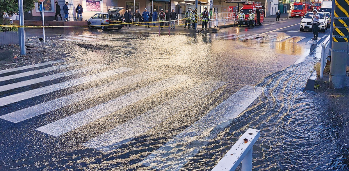 横浜市内では直近の5年間、毎年50〜60件の水道管漏水事故が確認されている。記憶に新しいのは昨年5月の磯子区中原3丁目付近や今年1月9日に磯子区磯子6丁目付近で発生した事故。1月は区内など一部で断水や濁水、周辺家屋への浸水被害もあった。
