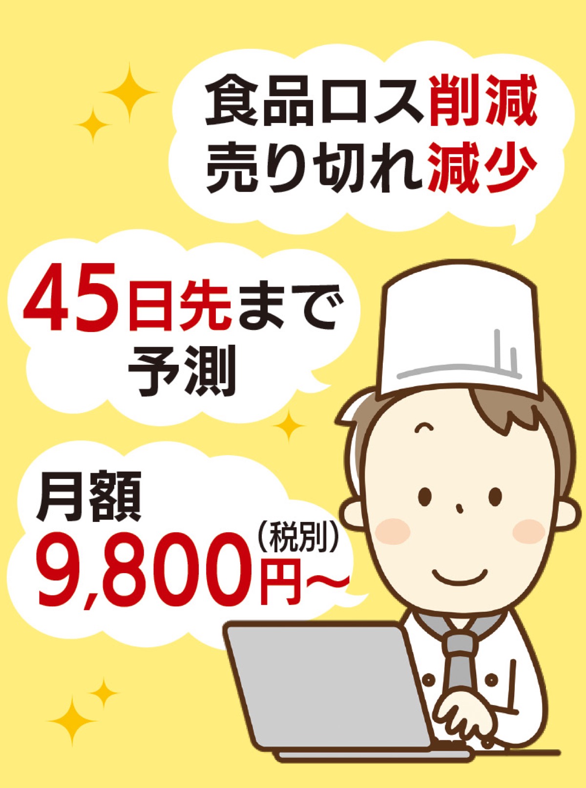 来店客数の予測精度をあげ、食品ロスや機会損失を削減をさせるのが狙い。過去の来店客数や天候データをもとに最大45日間の数字を出す。