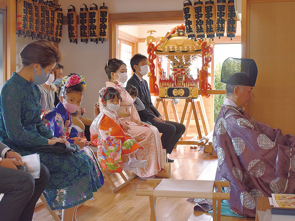 子どもの健やかな成長を感謝、祈願する七五三詣の季節を迎え、各神社には晴れ着姿の子どもの姿が目立つようになった。磯子区田中の田中神社では11月14日、熊野神社(磯子区中原)の杉原博昭宮司を招き、神事が行われた。