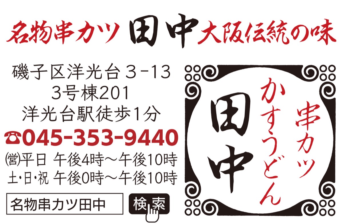 昨年3月に洋光台駅前にオープンした大阪伝統の味、「名物串カツ田中 洋光台店」は、テイクアウトを強化中だ。