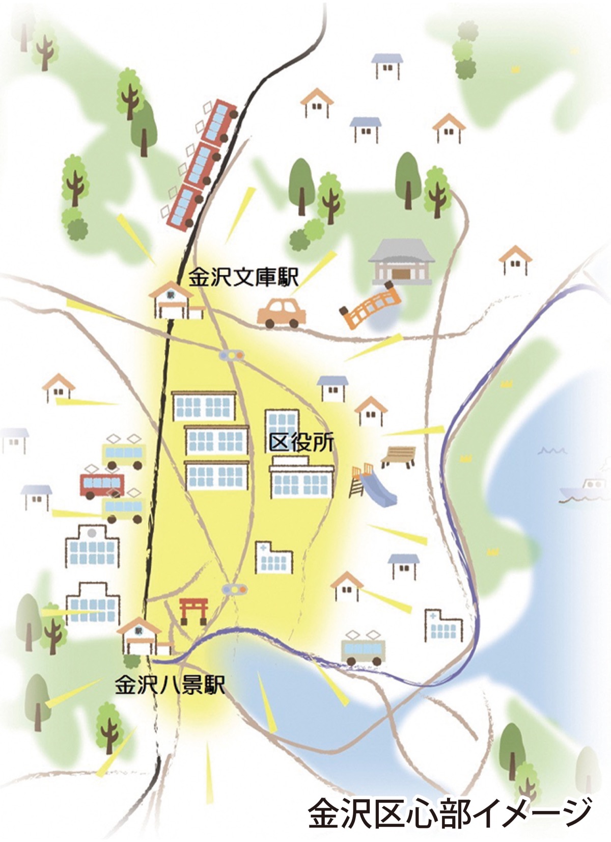 また、将来像のイメージとして、「金沢文庫駅・金沢八景駅を区の玄関口ととらえた”顔づくり”」「回遊性を高め、歩いて楽しめる魅力的な歩行者空間の創出」「区心部のアクセス性向上のための交通インフラの強化」などを挙げている。