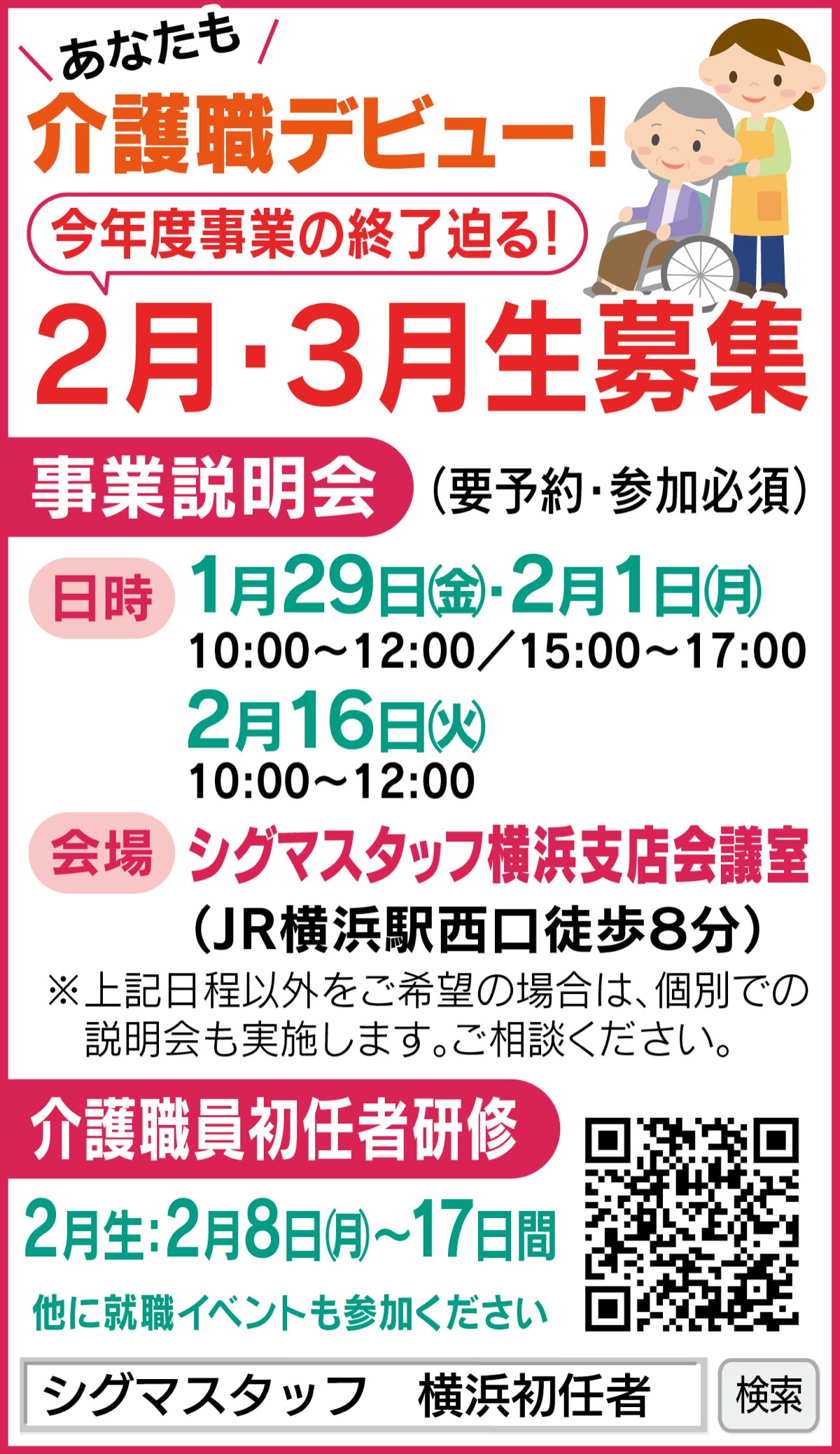 説明会の予約・問合せは、シグマスタッフ【電話】045・548・6494(横浜介護担当)へ。