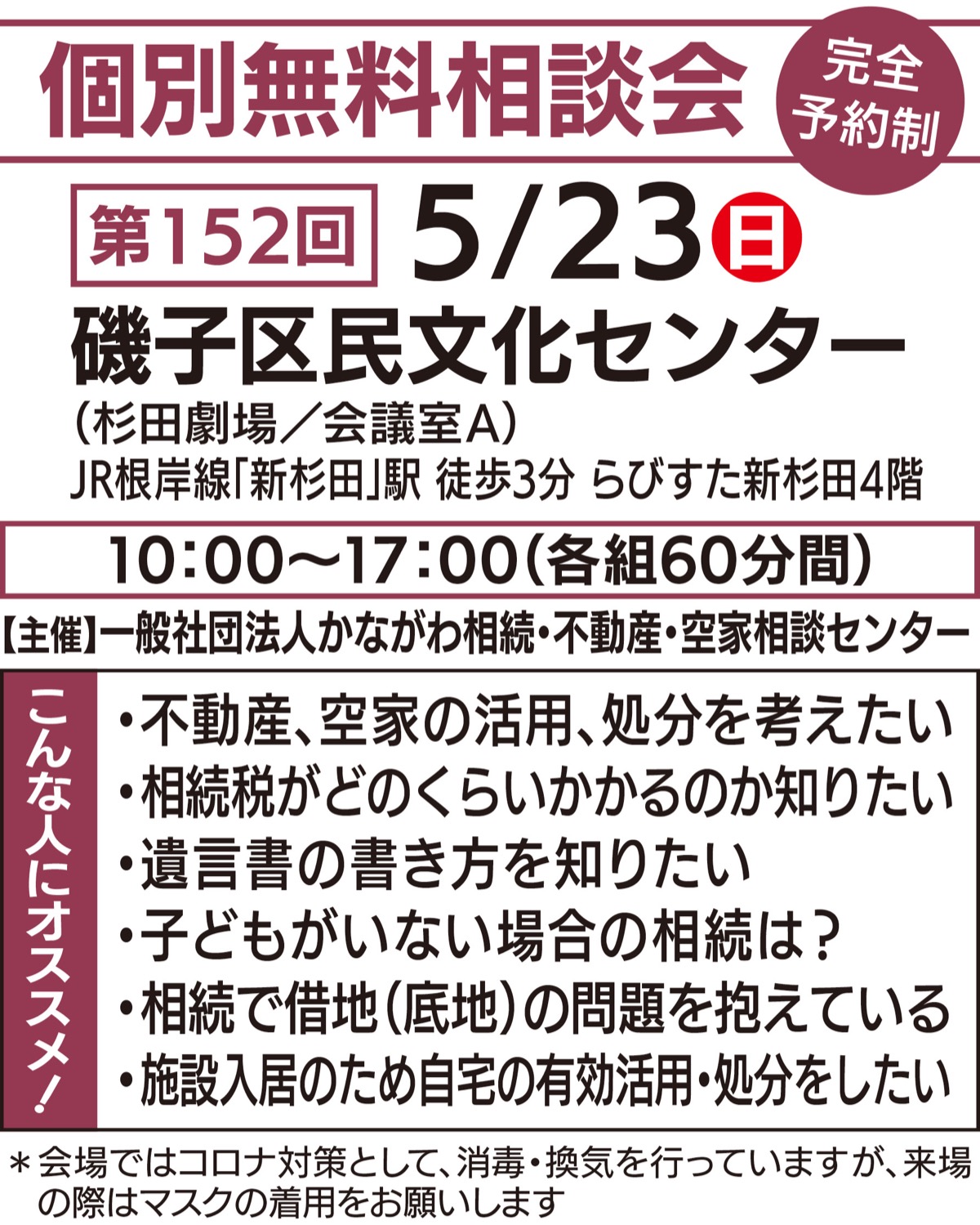 同法人は一般を対象にした個別の無料相談会を市内各地で定期的に開催しており、相続、不動産関係以外にも老後資金対策や高齢者施設への住み替えなど、最適かつ確実なアドバイスと迅速で丁寧な対応に定評がある。
