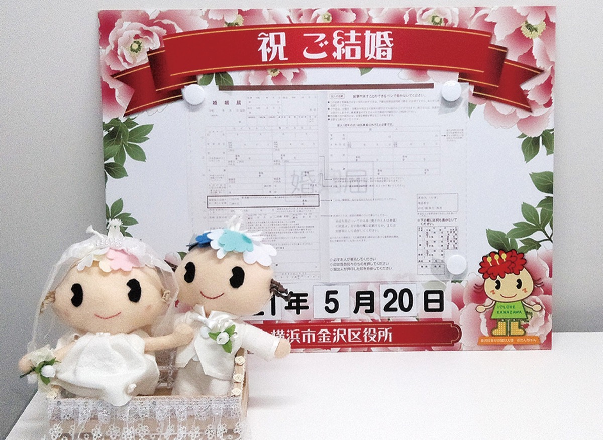 金沢区は婚姻届を提出する際に記念写真を撮影するカップルのために、専用ボードを製作した。「祝ご結婚」という文字と日付が入ったボードの中央に婚姻届をマグネットで貼ることができる。さらに永井京子区長自ら、区の広報キャラクター「ぼたんちゃん」のウェディング姿のぬいぐるみを手作り。婚姻届を提出しに窓口に来たカップルに、職員が声がけをし写真撮影の手助けをしていくという。