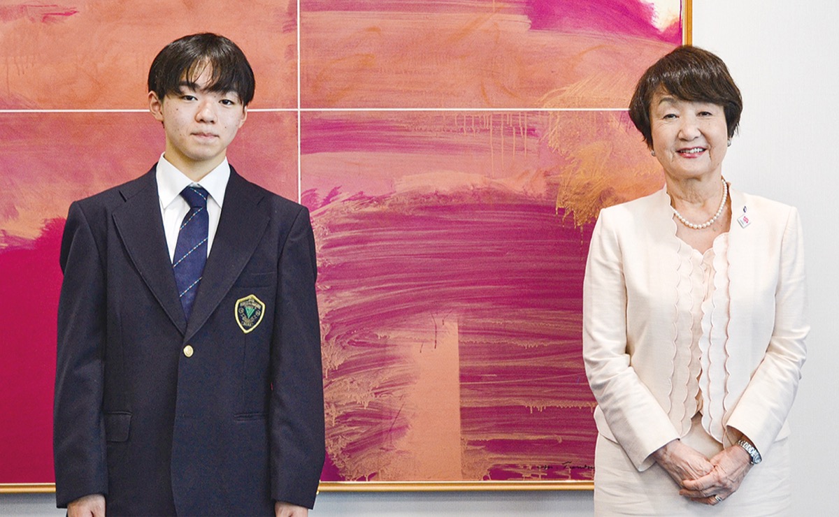 3月のフィギュアスケート世界選手権(スウェーデン)で銀メダルを獲得した鍵山優真選手(18)=星槎国際高横浜=が5月18日、横浜市役所で林文子市長に成果を報告した。