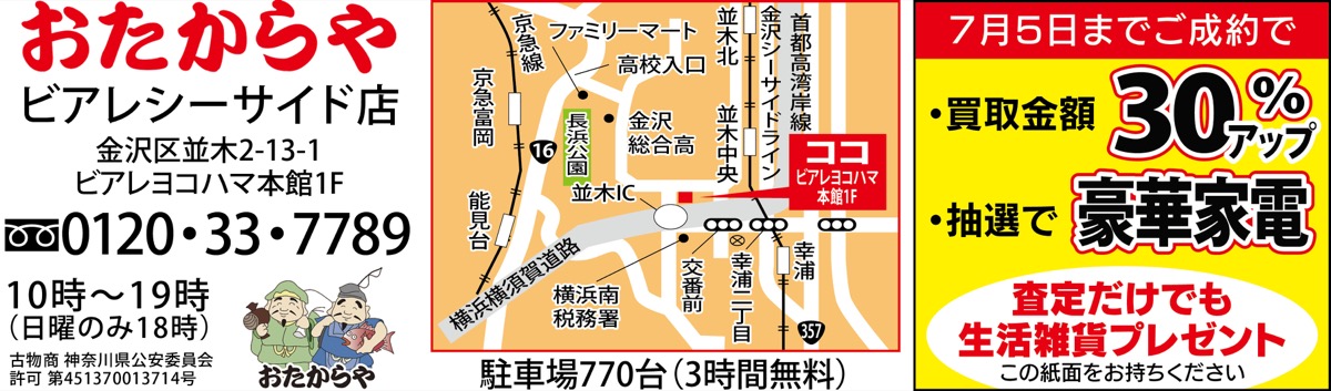金沢区並木の商業施設「ビアレヨコハマ」本館1階にこのほど、買取専門店「おたからやビアレシーサイド店」がオープンした。