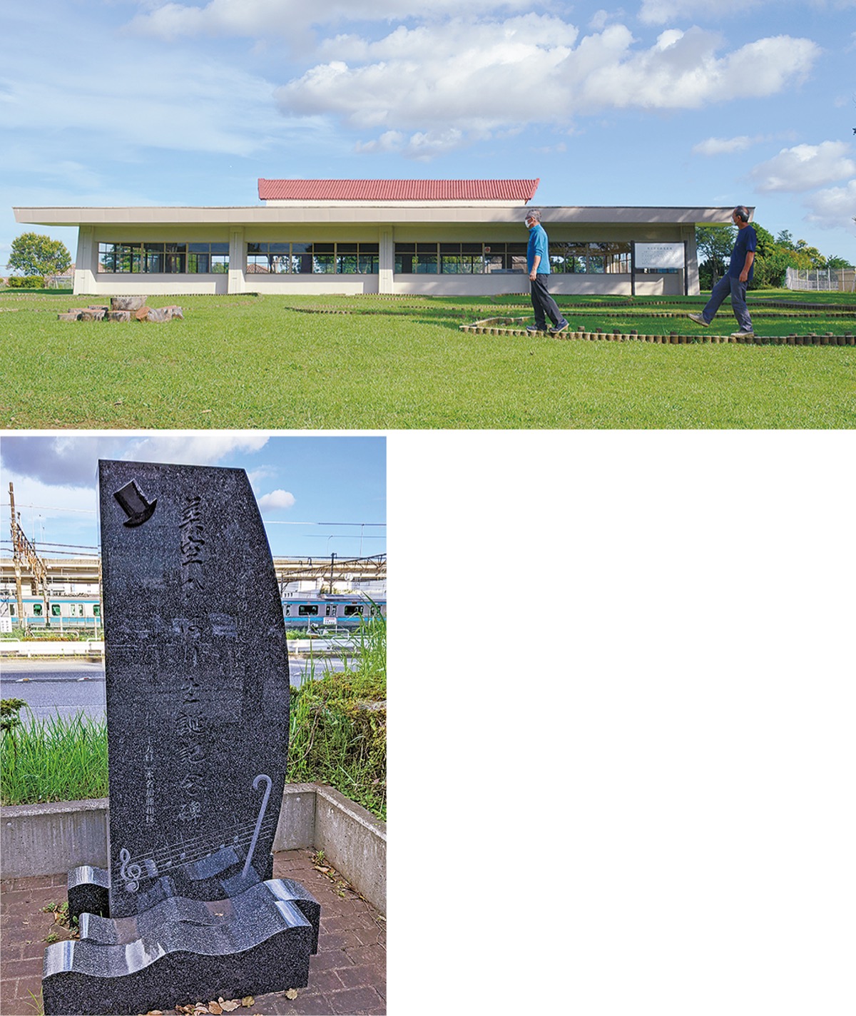 ゆずの北川悠仁さんと岩沢厚治さんは磯子区岡村出身。2003年に発表されたアルバム「すみれ」のブックレットに登場する場所は、国の指定史跡の「三殿台(さんとのだい)遺跡」だ。2人の母校・岡村小学校に隣接し、縄文・弥生・古墳時代の竪穴住居を展示。2人になりきって撮影できるように、撮影場所や立ち位置には「ゆず」のマークが記されている。また、壁画が飾られている「岡村天満宮」、ライブを行った「岡村公園」など、ゆかりの地が点在している。