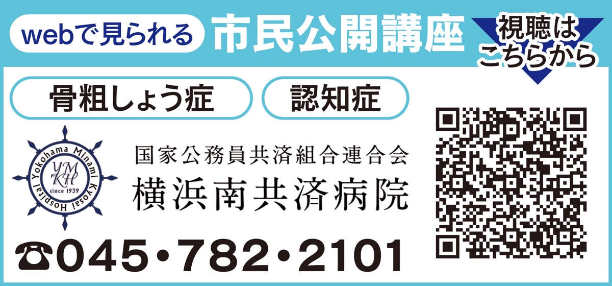 横浜南共済病院は地域の人々に、正しい食生活や病気の知識を知ってもらおうと市民公開講座をweb上で公開した。テーマは「骨粗しょう症」と「認知症」の2本。左記の二次元コードか同院のホームページから見ることができる。