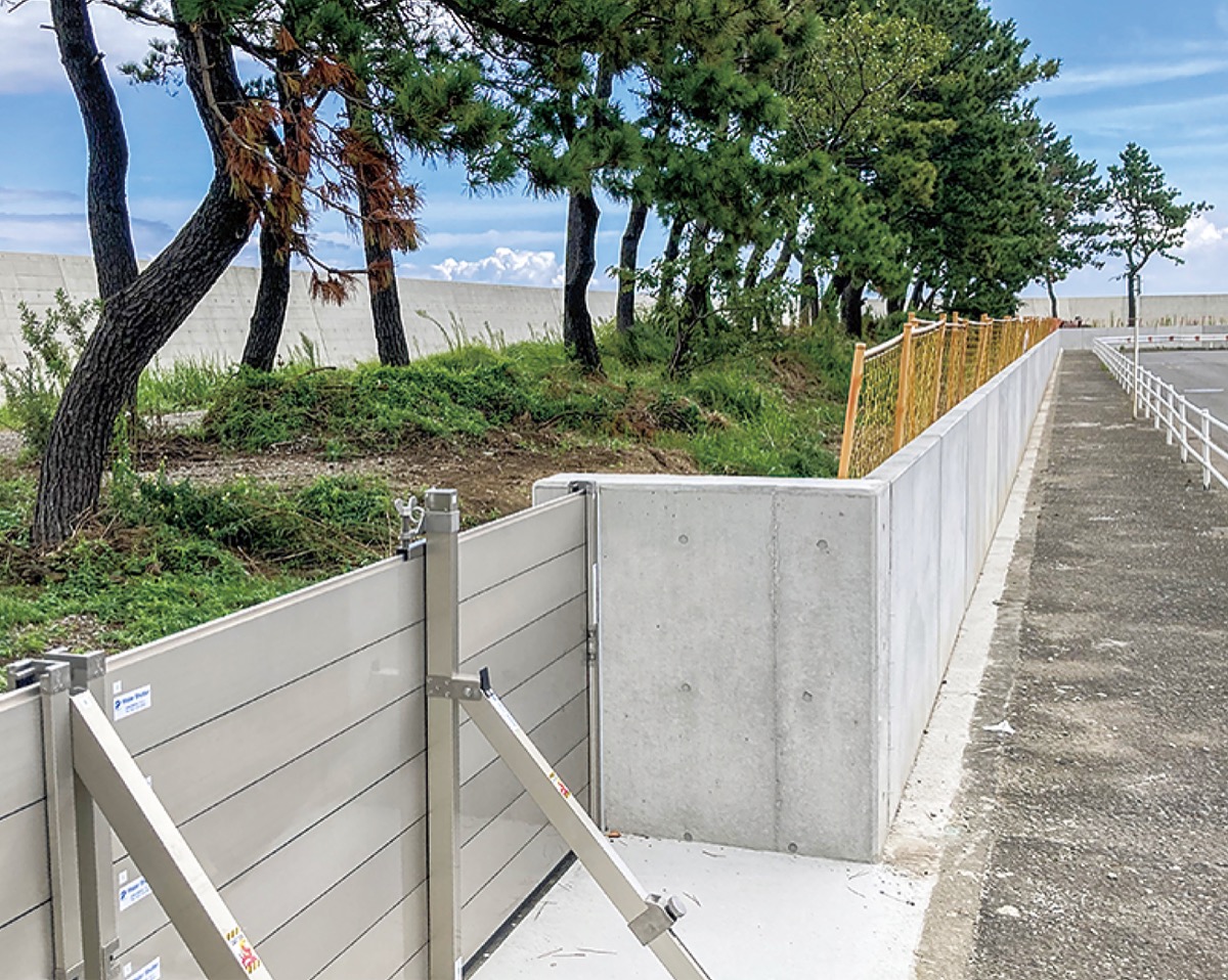 市は護岸の前面の消波ブロックと約3mの護岸のかさ上げで、19年の台風15号程度の高波に十分対応できるとしているが、内側に防潮堤を設置することでさらなる安全性を確保。台風シーズンを前に、近隣企業が安心して操業できる環境を整えた。