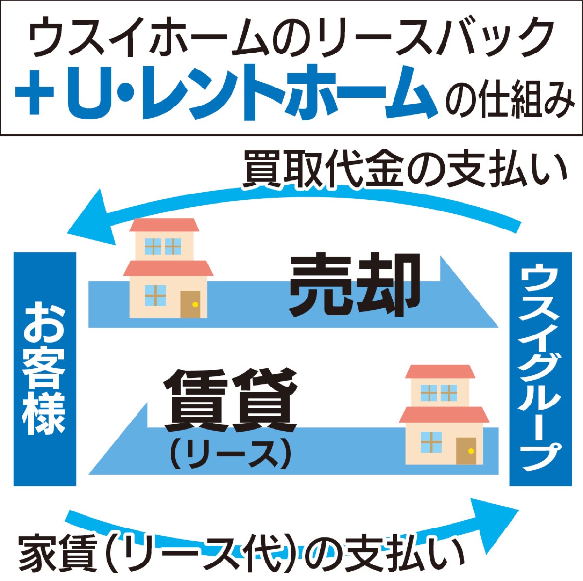 不動産会社のウスイホームには、持ち家を売って売却代金を得る一方で、その家に家賃を払ってそのまま住み続けられる「リースバック」のシステム「レントホーム」のサービスがある。