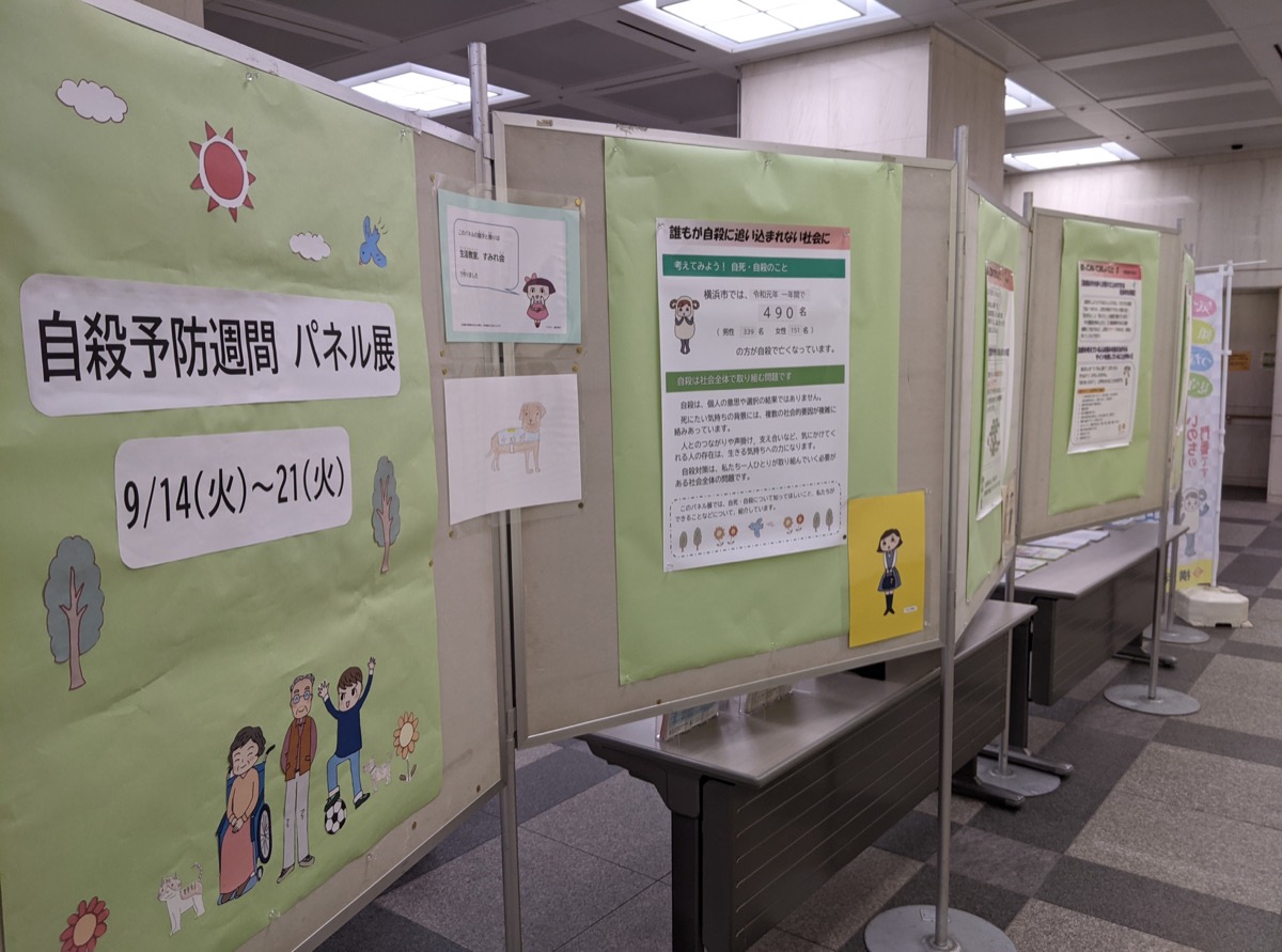自殺予防週間(9月10日から16日)にあわせて、磯子区役所1階区民ホールで9月21日まで「自殺予防週間パネル展」が開かれている。