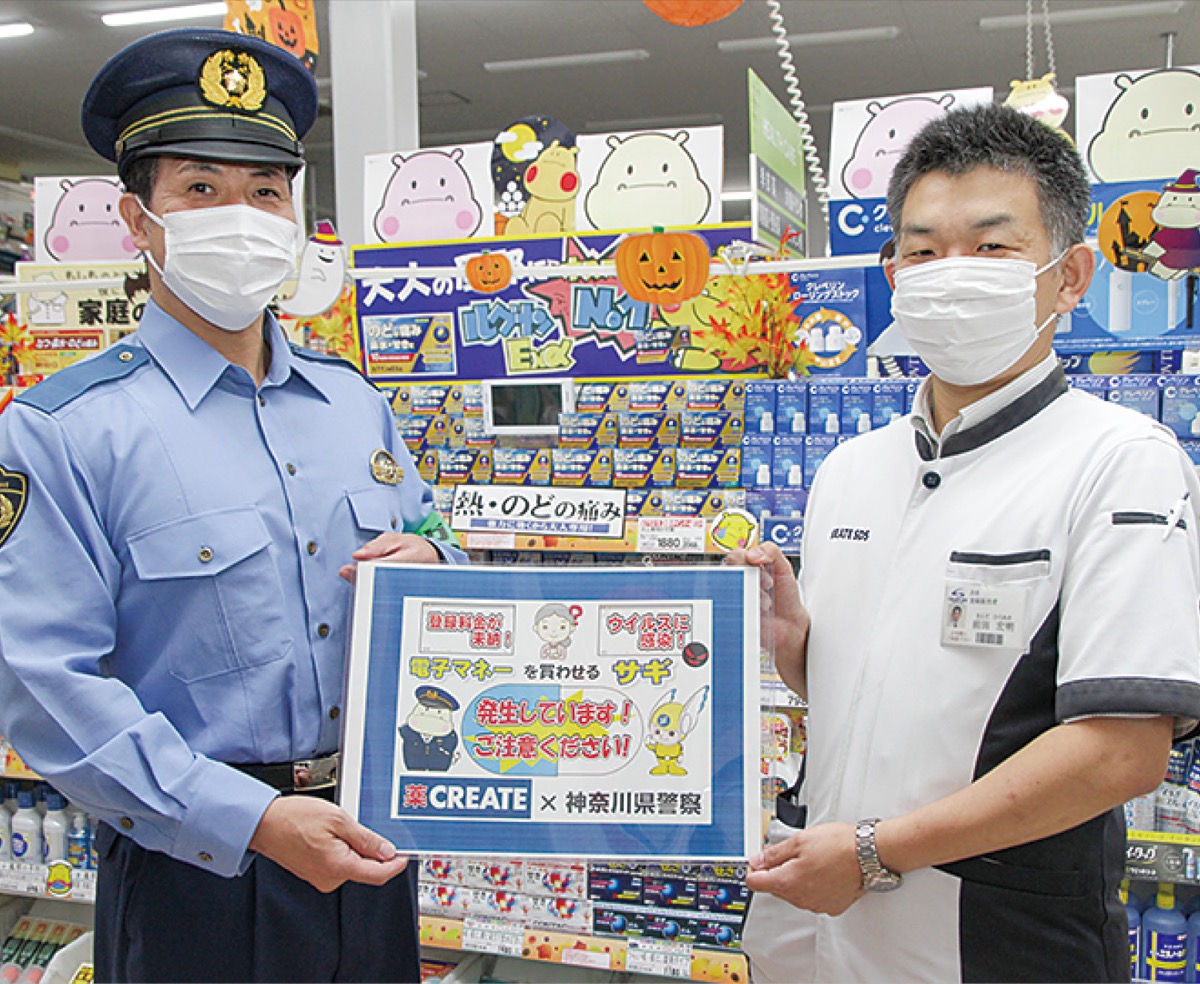 10月19日には磯子丸山店でステッカー掲示開始のセレモニーを開催。同店の前田宏明店長は「地域貢献として警察に協力している。高齢のお客様が多いので、被害に遭わないようになれば」と話した。また、県警本部の菅健司警視は「(同社の店舗は)地域密着で、幅広い年齢層の来店があり、家族間を含めて注意喚起を図ることができる」と期待を語った。