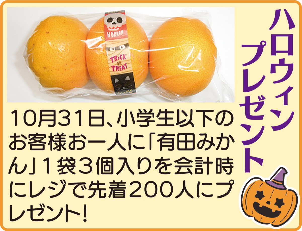 「8月の長雨の影響で出荷数不足と品質低下が発生していましたが、ようやく回復に向かいました」とコーラル青果の担当者。30日(土)の大還元祭では、そうした品々をご存じ「あの価格」の50円で大奉仕する。さらに「早生フジりんご大玉」(状況により中玉が混じる場合有)を”とびきり価格”で提供し、当日販売個数記録2千個以上を目指す。