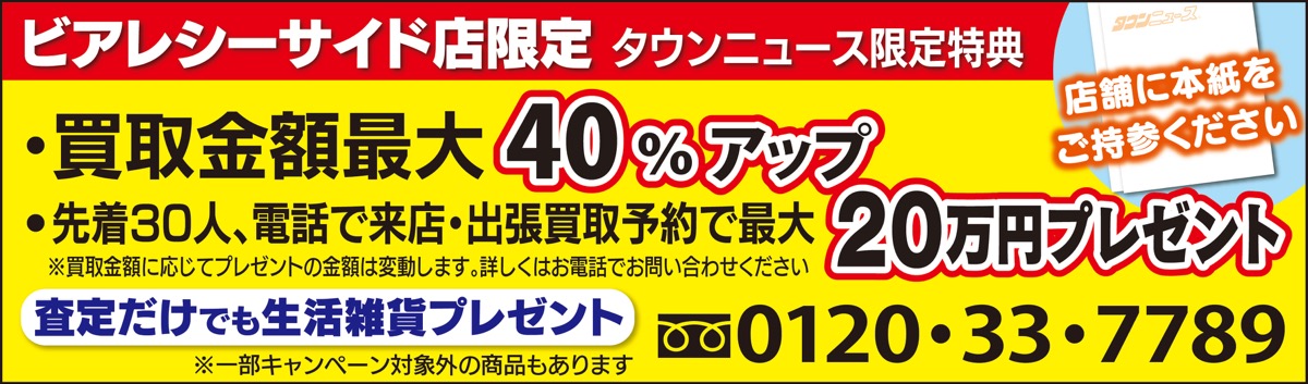 金沢区並木の買取専門店「おたからやビアレシーサイド店」では、現金を進呈するなど、お得なキャンペーンを実施中。スタッフは「大掃除で出てきた品も、処分する前にぜひ一度お電話ください。査定だけでも大歓迎です」と話す。