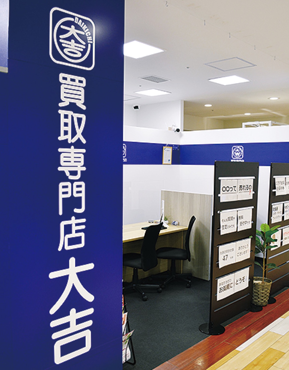 金沢区並木のイオン3階フードコート横にある買取専門店「大吉」では、無料相談を受け付けている。