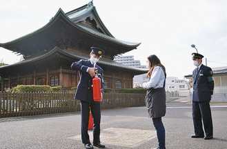 磯子消防署は1月28日、東漸寺(磯子区杉田)で文化財防火デーにあわせた立ち入り検査を行った。