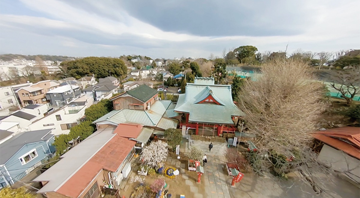 これは美術・音楽・演劇の各ジャンルで、障害のある人もない人も一緒に楽しさや感動を分かち合う「杉劇アートdeにこにこプロジェクト」の一環。その中の「地元発掘映像交流プロジェクト」として、3年かけて磯子の地域を題材にした映像作品を制作していく。今回は岡村天満宮にスポットを当て、ドローンによる空撮を中心に作り上げた。