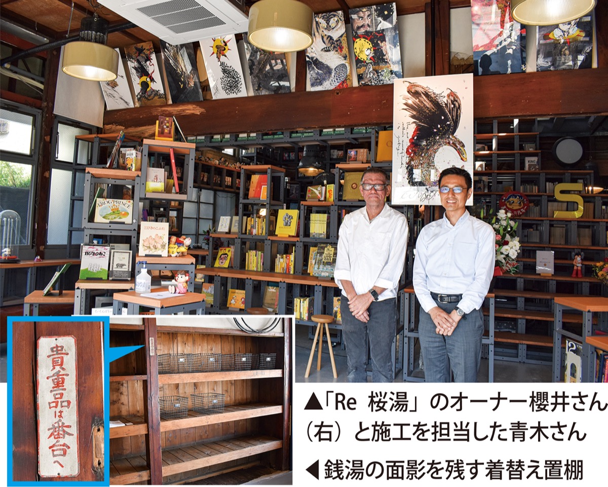 「Re桜湯」は基本、櫻井さんが営む不動産業や損害保険・生命保険代理業などのオフィスに使用。日程を限定し、憩いの場となるような本を読める空間やワークショップなどのイベントが開催できる場所として提供していく。櫻井さんは「名前の"Re"には、あるべき姿に戻すという思いを込めた。かつてのように人の集まる場所になれば」と話した。