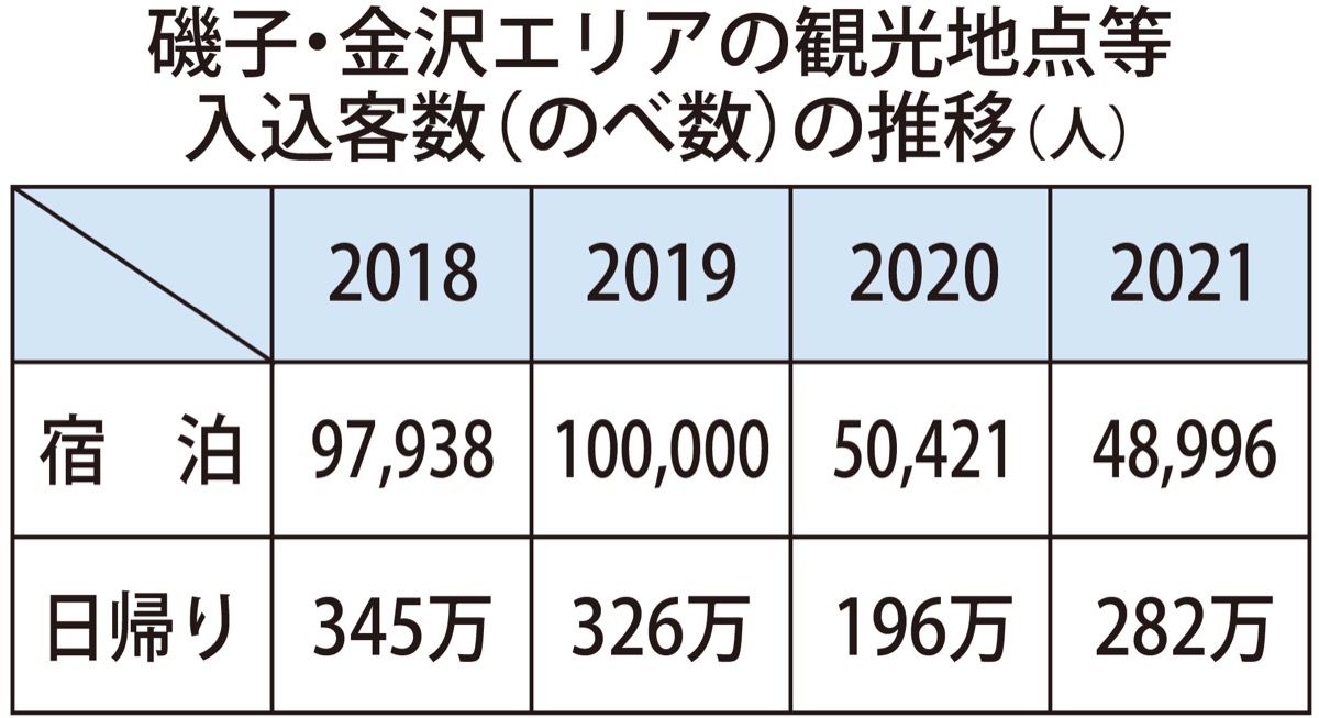 昨年一年間(2021年1月〜12月)の横浜市の観光入込客数(実数)や観光消費額がこのほど発表された。磯子・金沢エリアの入込客数(のべ数)は宿泊で約4万9千人(昨年対比2・8%減)、日帰りで約282万人(同44%増)だった。回復傾向はみられるものの、依然、新型コロナの影響が見られた。