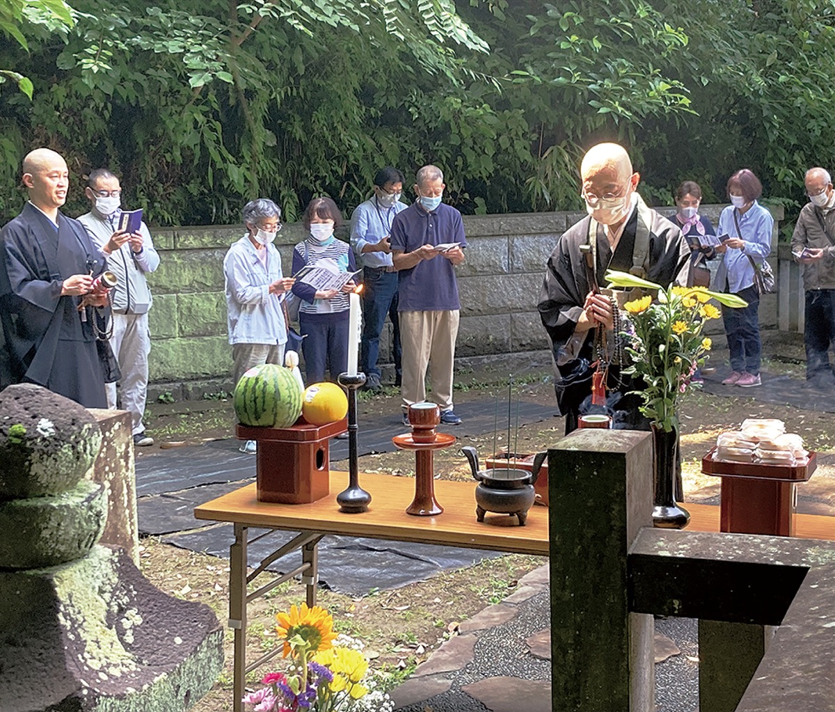 当日は金沢文化協会や横浜金澤シティガイド協会、横浜金沢観光協会の会員ら22人が参加。禅林寺の菊地茂雄住職、重忠を開基とする東光禅寺の小澤大吾住職の読経にあわせ、般若心経を唱えた後、ひとり一人が焼香し祈りを捧げた。