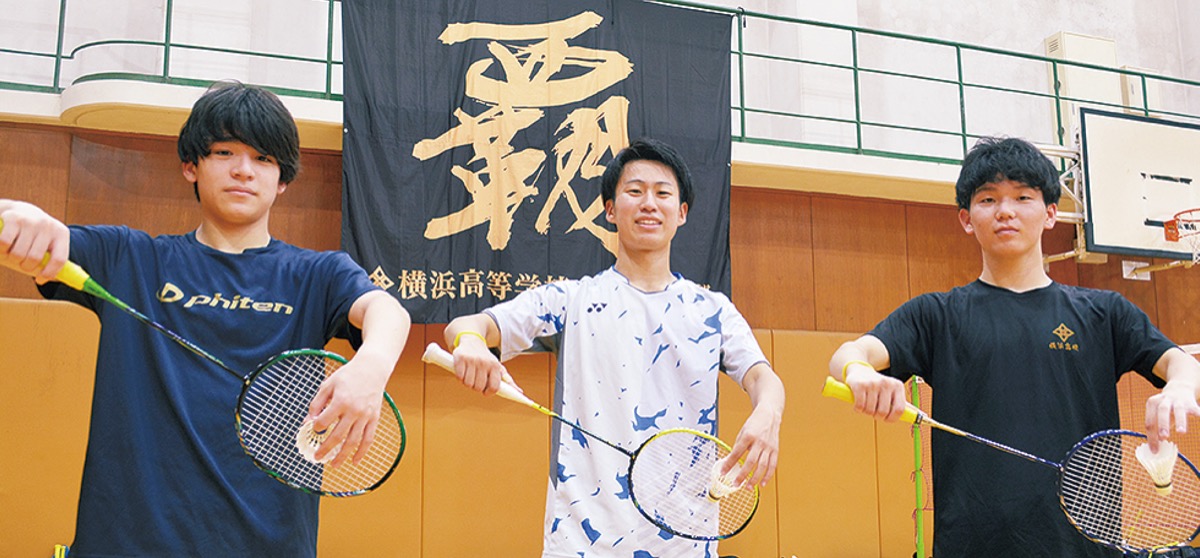 横浜高校バドミントン部からは、3人がインターハイに出場。中山翼さん(3年)がシングルス、小林翔太さん(同)と原田一輝さん(2年)のペアがダブルスで、7月24日から徳島県での大会に臨む。