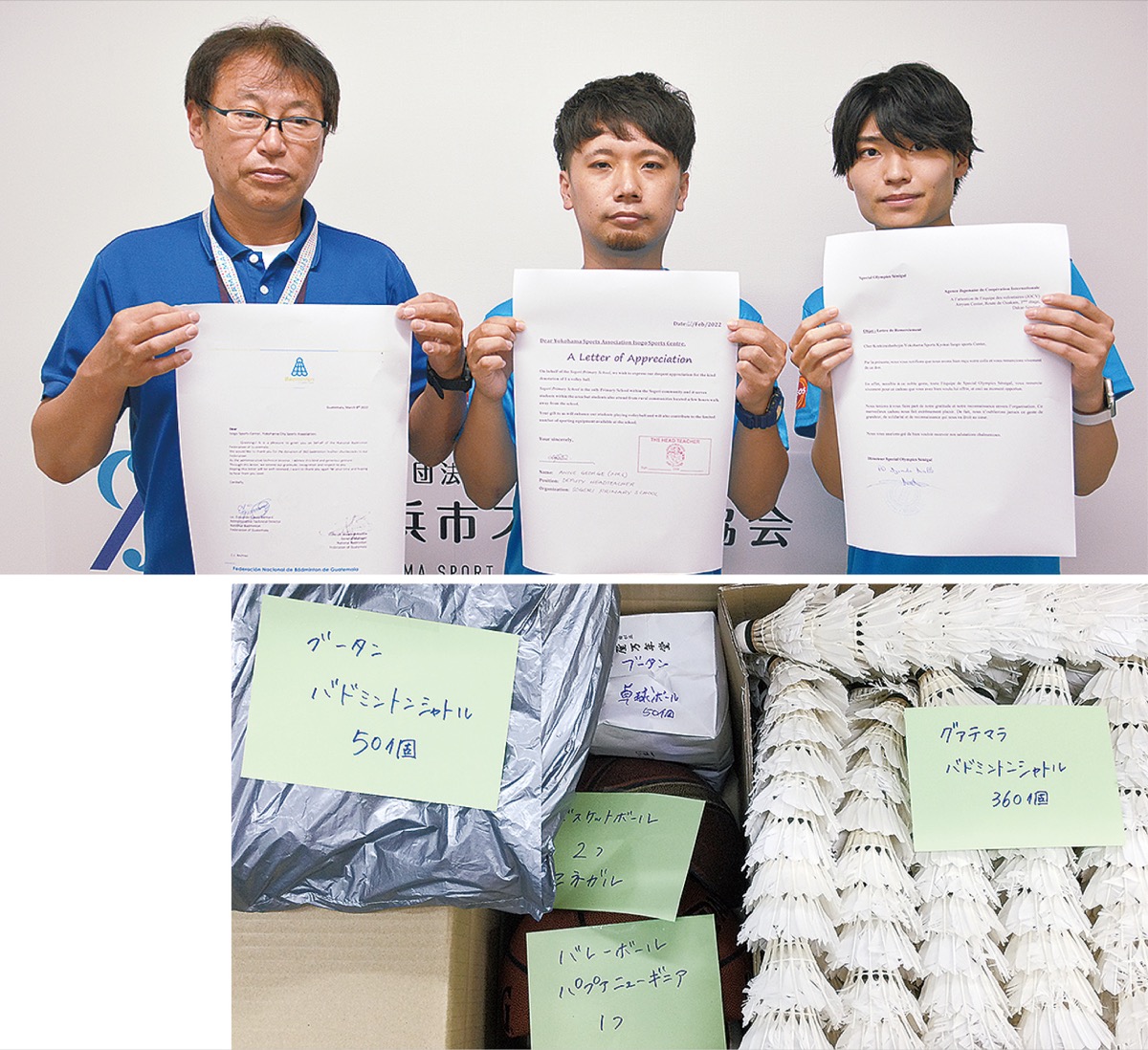 集めた品はJICAを通してグアテマラ、セネガル、パプアニューギニアへ届けられ、6月に寄贈先の学校やスポーツ団体から同所に宛てた感謝状が届いた。感謝状には「寄贈品によって、より生徒がバレーボールで遊べることになる」といった言葉が記され、各国の紹介や現地のスポーツの状況なども添えられた。