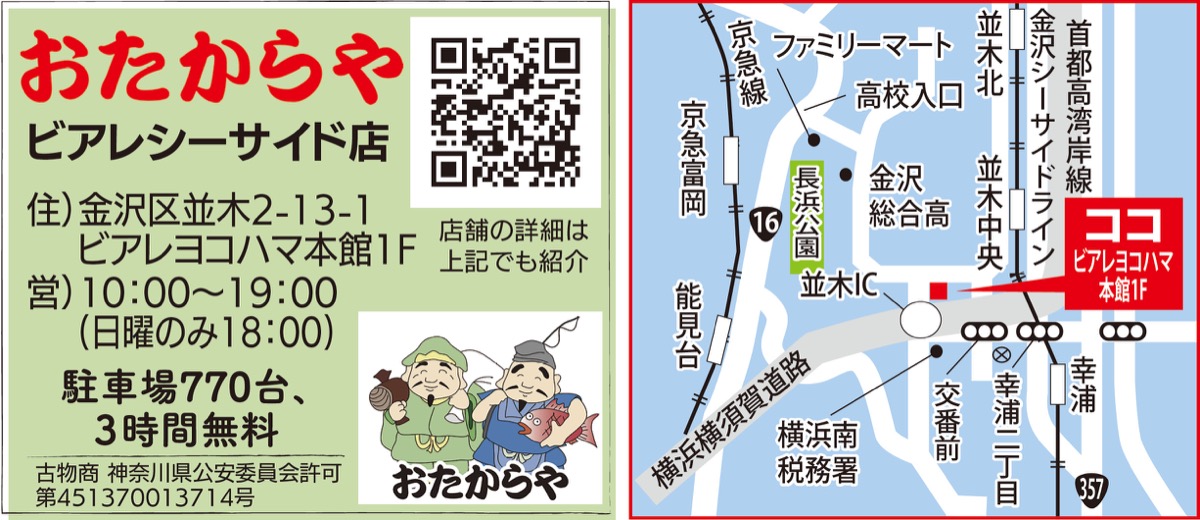 場所は金沢区並木の商業施設「ビアレヨコハマ」本館1階で、駐車場は3時間無料。7月末まではロレックスの買取成約で10万円がもらえる特典も。自宅などへの出張査定も無料。まずは電話で来店・出張予約を。