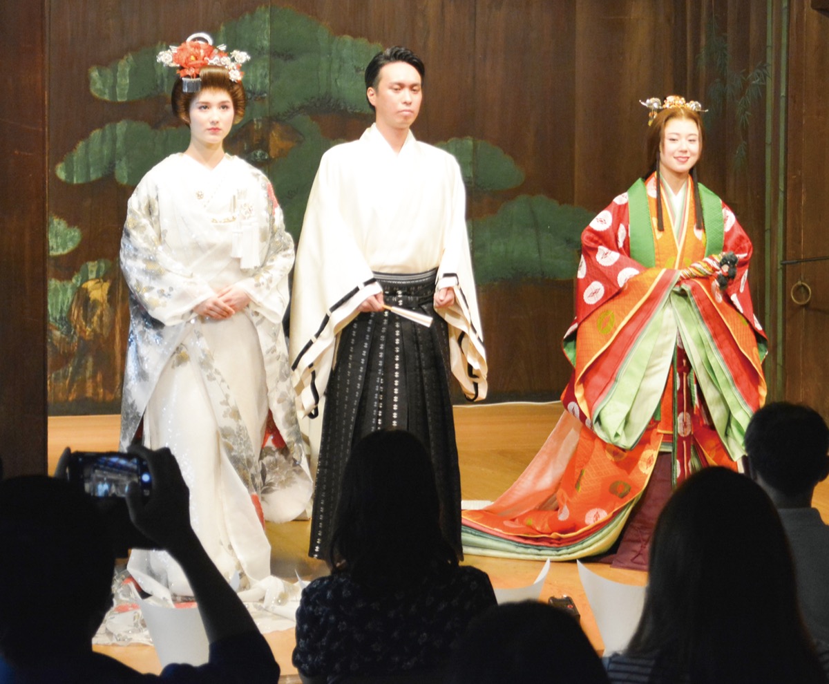 事業の周知や改修工事を終えた庭園のお披露目も兼ね、7月22日に「くらきフェアー」と題した特別公演を実施。観光・ウェディング関連業者や一般客約50人を招待し、ブライダルショーなどを行った。ショーでは十二単の着付けを実演し、新郎新婦役のモデルが和装で登場して挙式のイメージを披露。今後は1カ月に3組限定で、随時受け付ける予定。来年3月にはニュージーランド在住の外国人1組の予定が決まっているという。