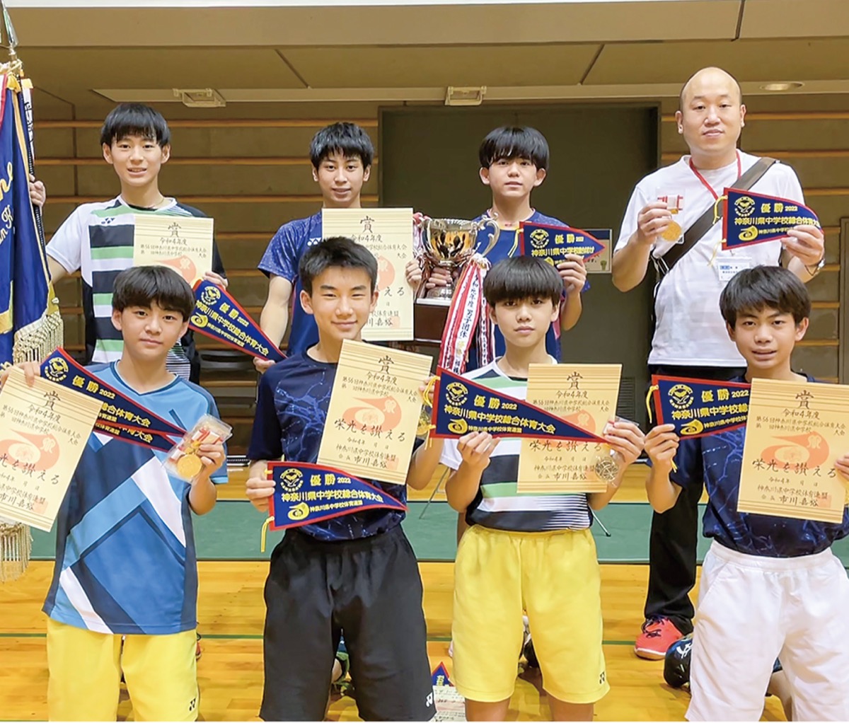 金沢中学校バドミントン部男子が、7月末に藤沢市で行われた神奈川県中学校総合体育大会で三冠を果たした。団体戦と個人戦ダブルスは連覇。関東大会では団体戦と個人戦ダブルスでベスト4以上の成績を残し、県勢で唯一、明日8月19日から全国大会に出場する。