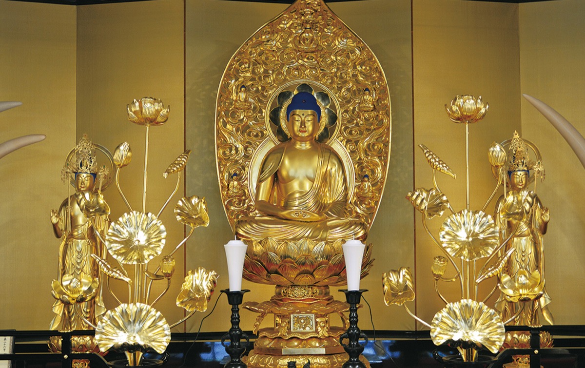 磯子区の真照寺(水谷栄寛住職/磯子8の14の12)はこのほど、敷地内に新たに阿弥陀堂「和光」を建設した。8月からは堂内で、同寺が所有する横浜市指定有形文化財の「木造阿弥陀如来および両脇侍像」の公開を始めた。