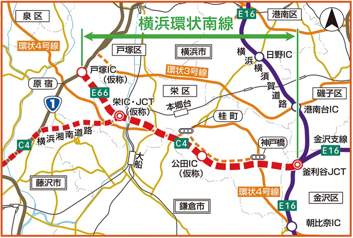 横浜環状南線は延長約8・9Kmの自動車専用道路で、工事初期の開通見込みは2020年度とされていた。その後、施工方法や安全対策の課題があがり、2025年度の開通予定に変更されていた。また、栄区田谷町と藤沢市城南を結ぶ、横浜湘南道路(延長約7・5Kmの自動車専用道路)は、24年度の開通をめざしていた。
