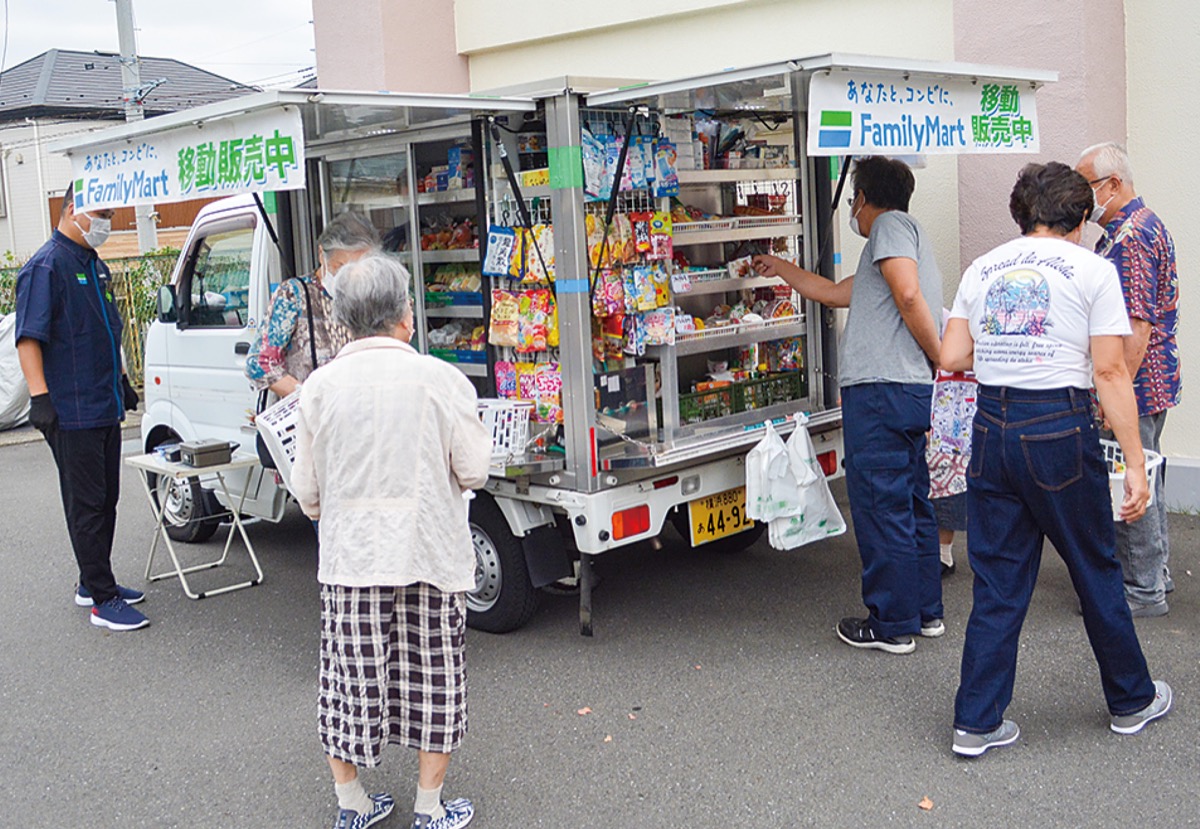 磯子区の久良岐丘自治会(松島勝美会長)で9月15日から、コンビニエンスストア「ファミリーマート磯子滝頭三丁目店」による移動販売が始まった。