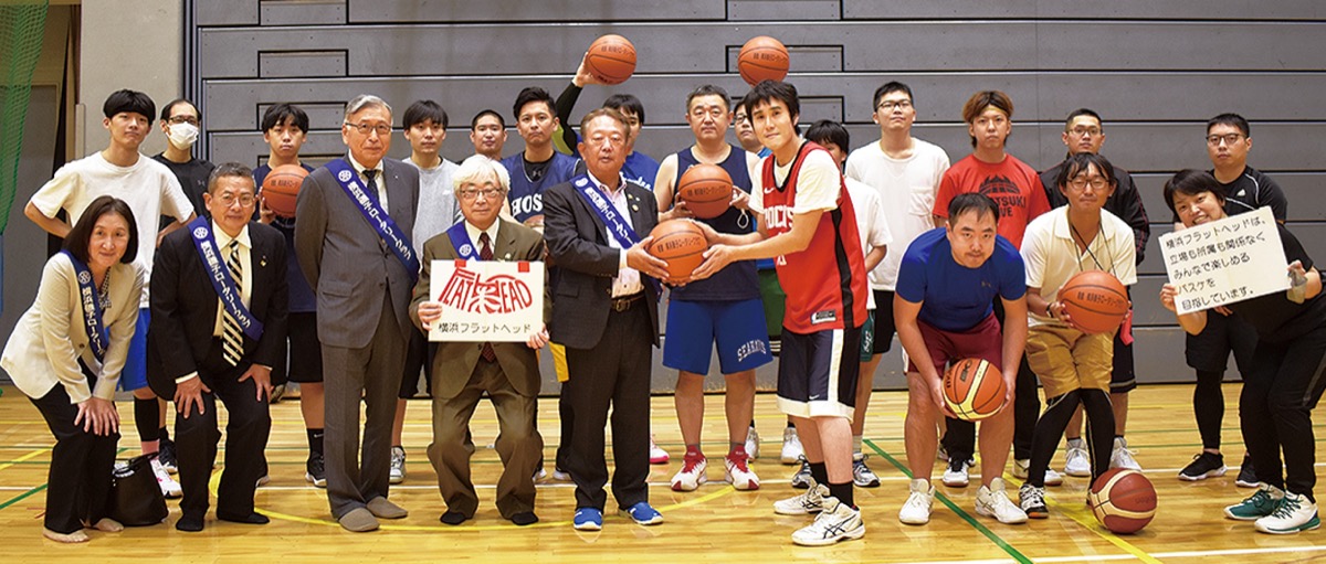 横浜フラットヘッドは障害者と健常者が立場や年齢に関係なくフラットな状態で参加できるバスケットボールサークル。「障害があるとスポーツしにくい現状がある。バスケをきっかけに居場所を作ることができれば」と田村大幸代表は話す。