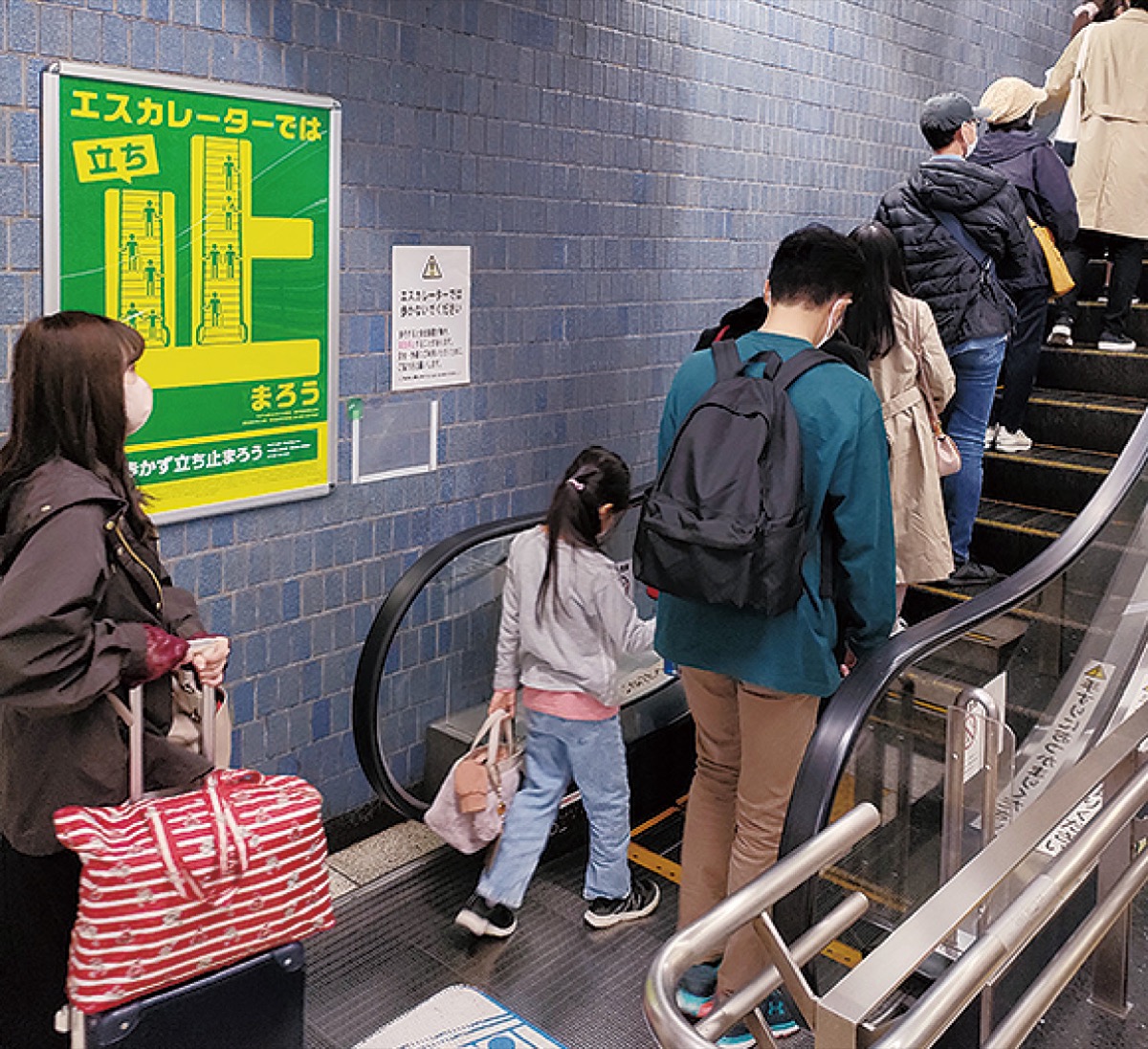 駅や商業施設のエスカレーターでは、左側に乗る人が立ち止まり、空いた右側を歩く人の姿が見られる。この「片側空け」は慣習だが、歩く人と立ち止まっている人が接触する危険性がある。