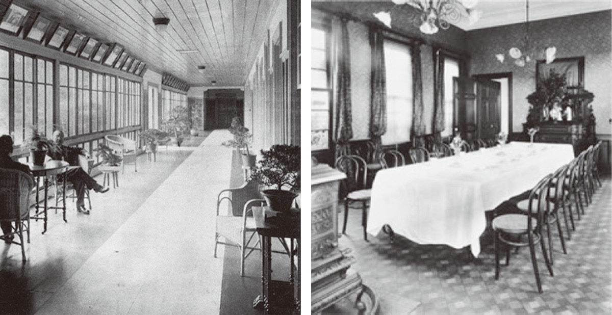 その施設のひとつが上等船客用の一号停留所。停留者には国内外のVIPが考えられることから建物全体が高級ホテル仕様に。内部は、サンルーム状の廊下の右側に8つの寝室、左側の両端に食堂と談話室を配置。建築史的には富士屋ホテル・日光金谷ホテル・奈良ホテルに並ぶ洋風ホテルの遺構と目され、国の文化財に指定された。
