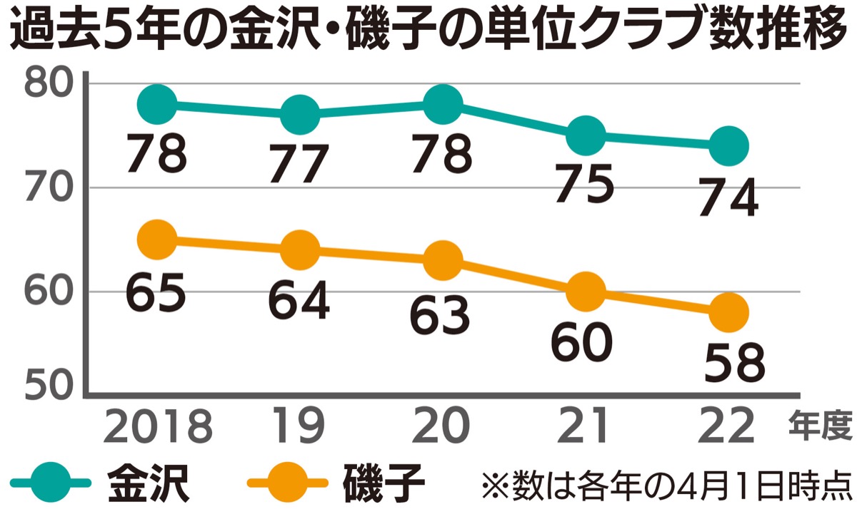 2022年4月1日現在、横浜市内全体で1449、金沢区では74、磯子区で58のクラブが活動する。多い時には両区とも100近い団体が活動していたが、近年は会員の高齢化や会長のなり手不足などの影響で、クラブ数は減少傾向。単位自治会町内会数に対するクラブの設置率は、半数程度にとどまっている。